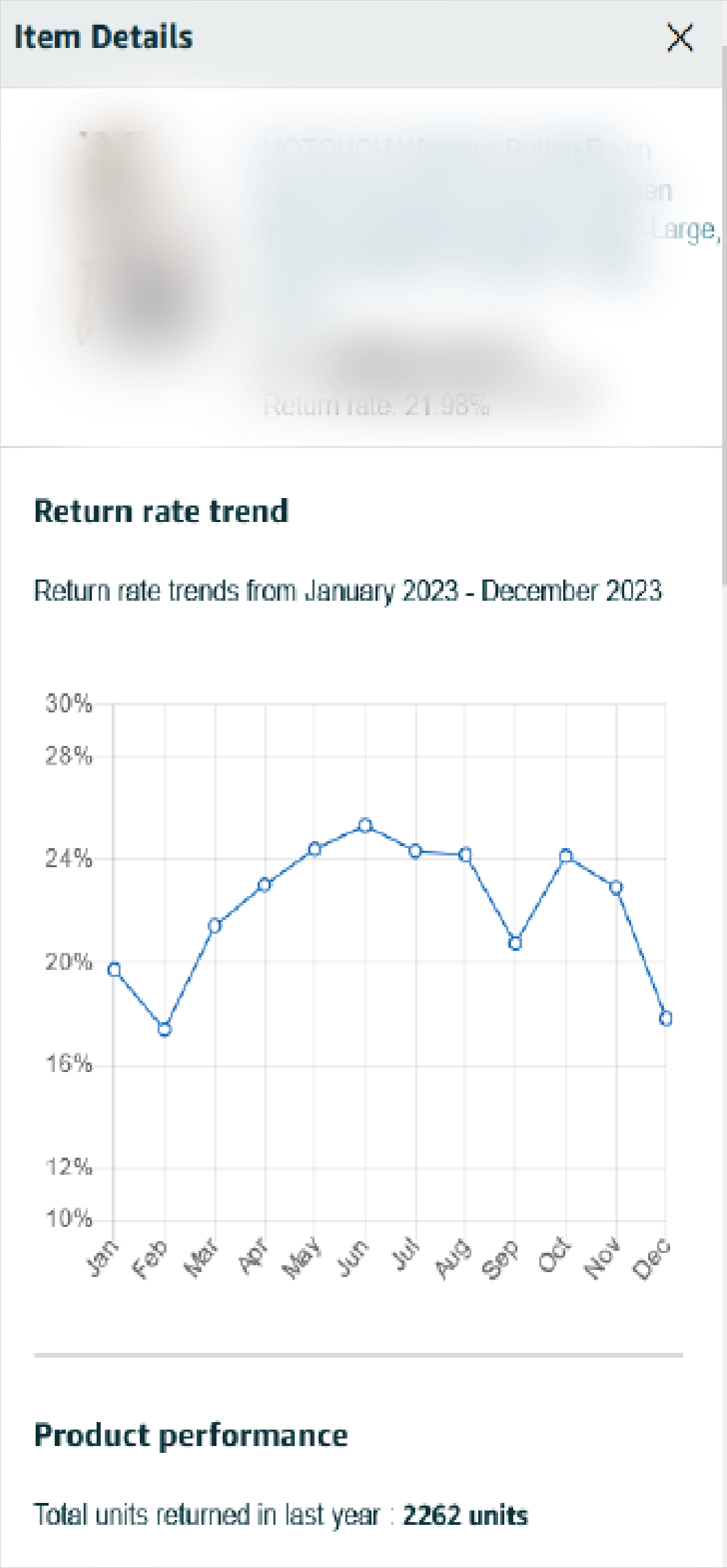 下图展示的是商品级别的退货信息,该商品的退货率达21.98%。此外,点击detail可以发现: