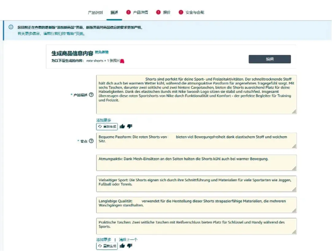 🏷️ 在小语种站点,卖家可以输入当地语言或者上传图片生成小语种Listing,如德语。