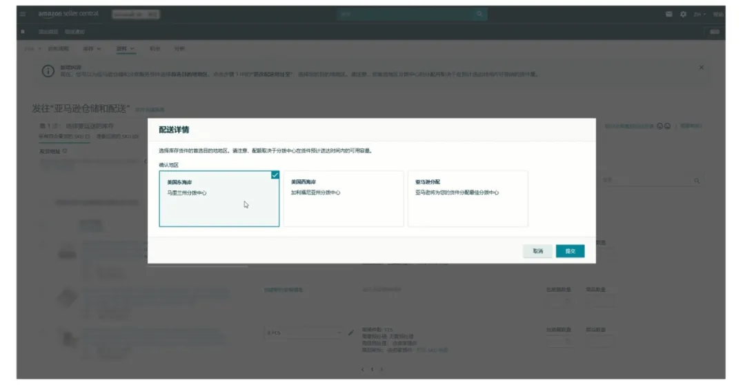 此外,卖家在建立AWD货件时,可以在卖家平台自行选择发货至AWD的美东仓还是美西仓。👇👇👇