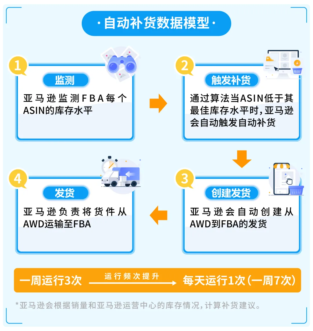 AWD优化了自动补货的逻辑,现在每天都会运行一次自动补货模型,确保更及时地触发自动补货。
