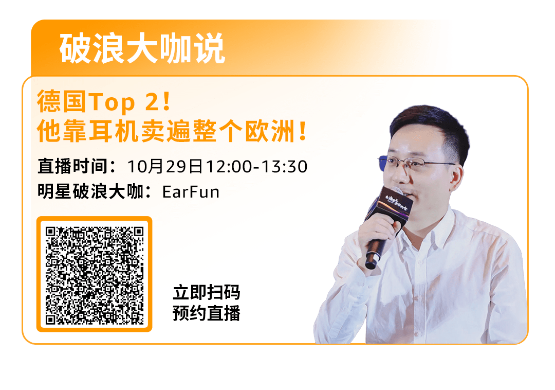 10月29日,明星破浪大咖EarFun将现身亚马逊直播间!“面对面”分享跨境出海经验,共讨品牌增长策略,助力站点拓展腾飞!立即预约“破浪大咖说”直播,获取更多行业资讯及独特洞见!