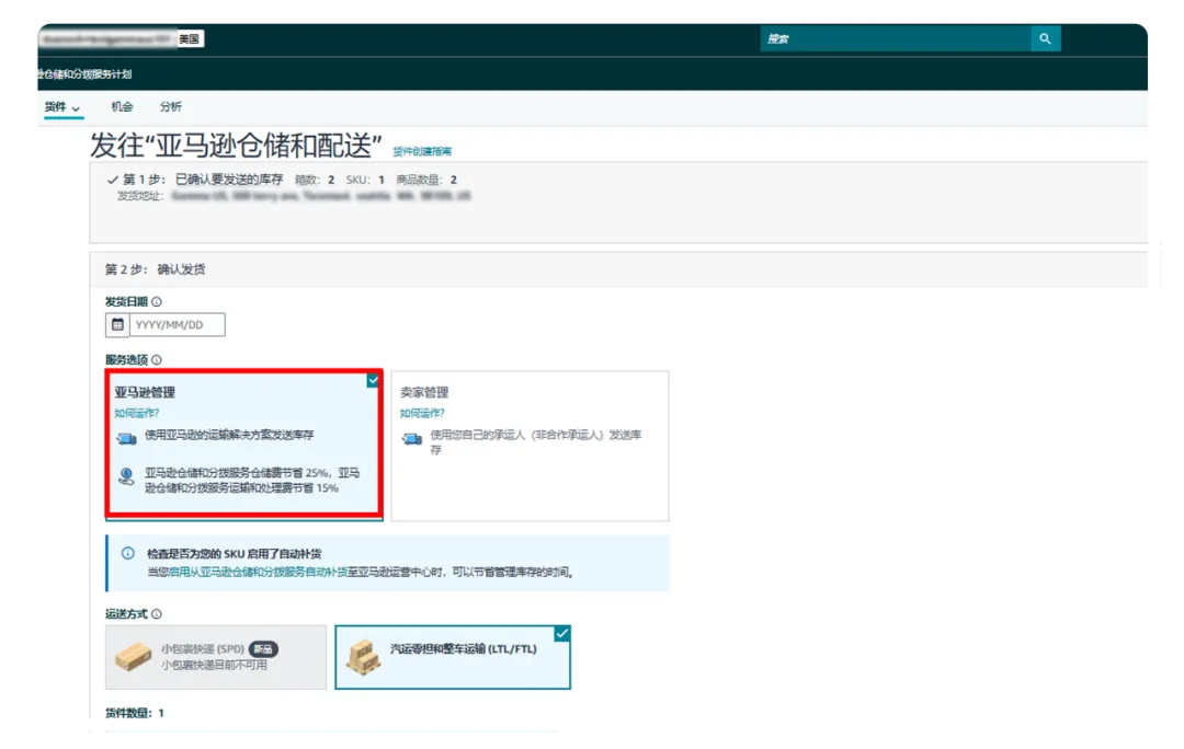当您选择“亚马逊管理”,即选择了亚马逊供应链智能托管服务。您可以通过“亚马逊全球物流AGL”或“Amazon SEND”来接收您在中国境内货件,仅需告诉亚马逊您的提货地点和时间,剩余的都交给亚马逊。此外,您还可以享受AWD各项费用的折扣优惠。
