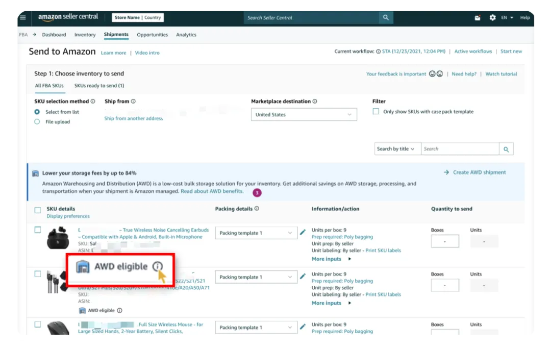 选择需要发货的SKU,您可以在这个页面找到符合AWD资格的SKU