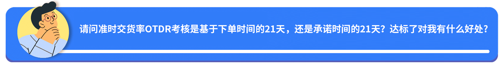 在剩余的100个订单中,如果有90个订单在承诺的"交货日期"当天或之前交货,那么您的OTDR就是90%。