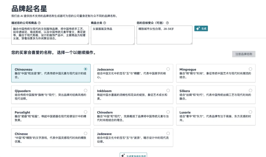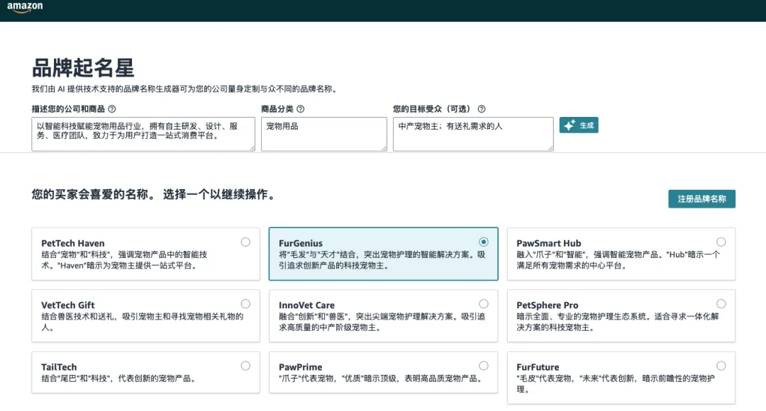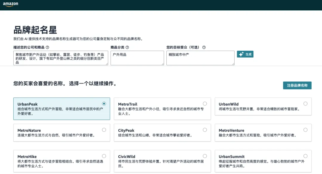 用AI帮你取一个地道的海外品牌名,「亚马逊品牌起名星」对所有人开放使用啦!