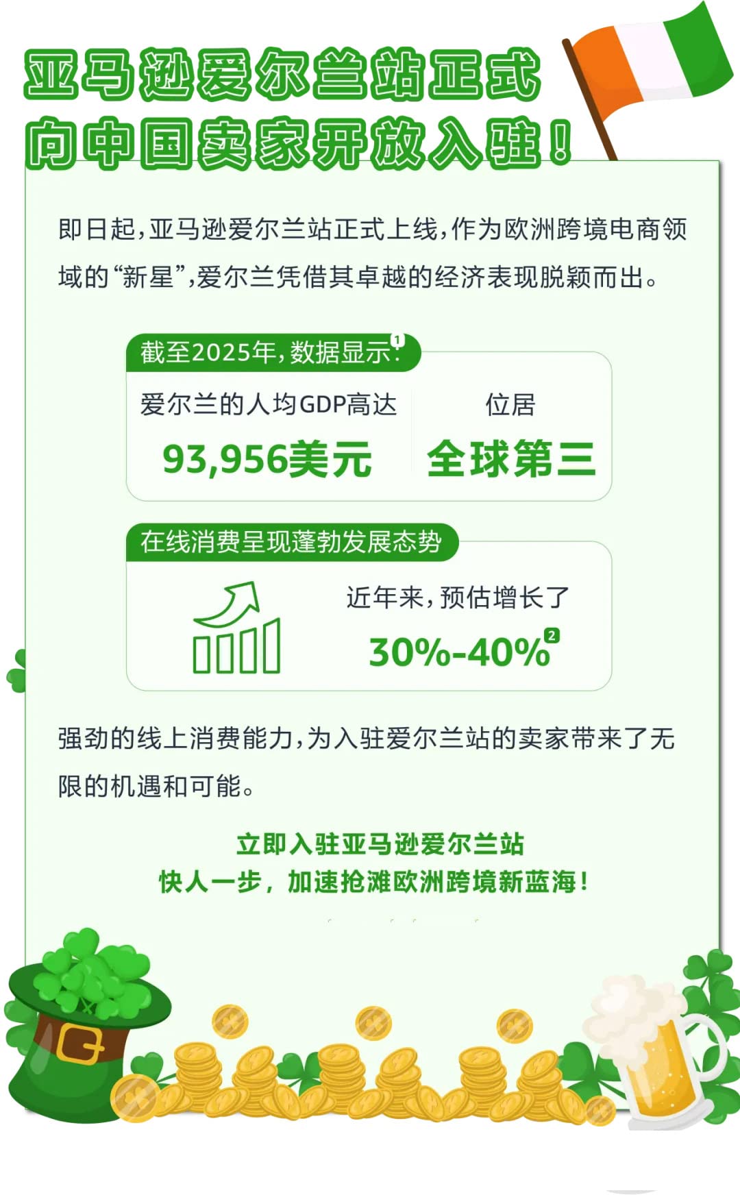 正式上线!亚马逊爱尔兰站邀你掘金人均GDP近10万美元的欧洲“富矿”!