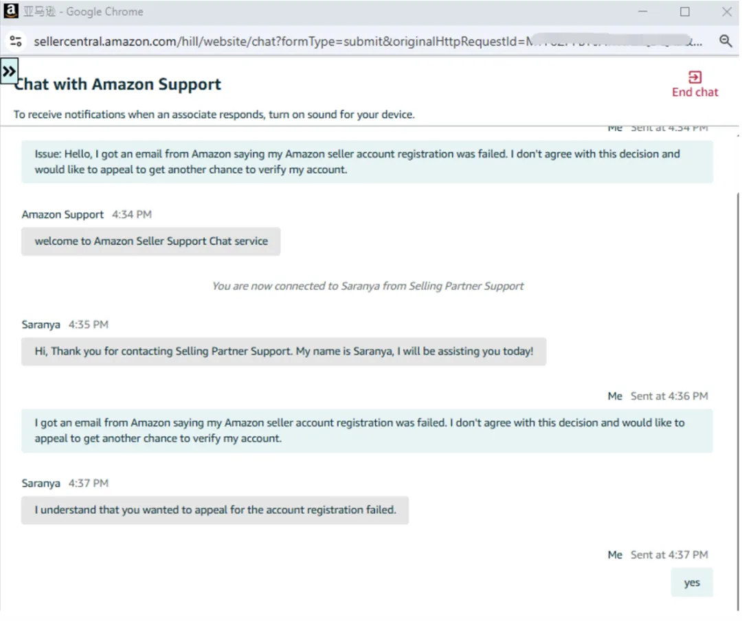📖比如:“Hello, I got an email from Amazon saying my Amazon seller account registration was failed. I don't agree with this decision and would like to appeal to get another chance to verify my account. ”
