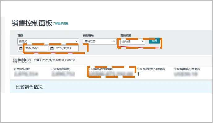 该数据在亚马逊后台即可获取,查看路径:通过亚马逊后台「进入报告菜单 - 进入入库配置服务费下载报告」,即可查看入库配置服务费的总开支;而后,通过「进入报告菜单 - 进入销售控制面板」,即可快速定位销售额,明确入库配置服务费占销售额的比例。