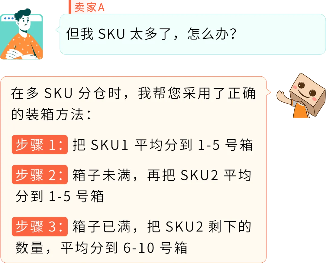 多SKU卖家入库配置服务费优化不到位,注意拆解是否出现SKU混装打包不规范的问题,利用正确的装箱方法,SKU再多也能清晰分仓、有效省钱。
