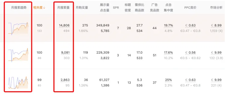 Regan通过数据分析服务商查看了月度搜索趋势、关键词维度数据分析、细分市场数据、等信息,分析类目的增长曲线,寻找上升趋势且尚未被垄断的细分市场切入。