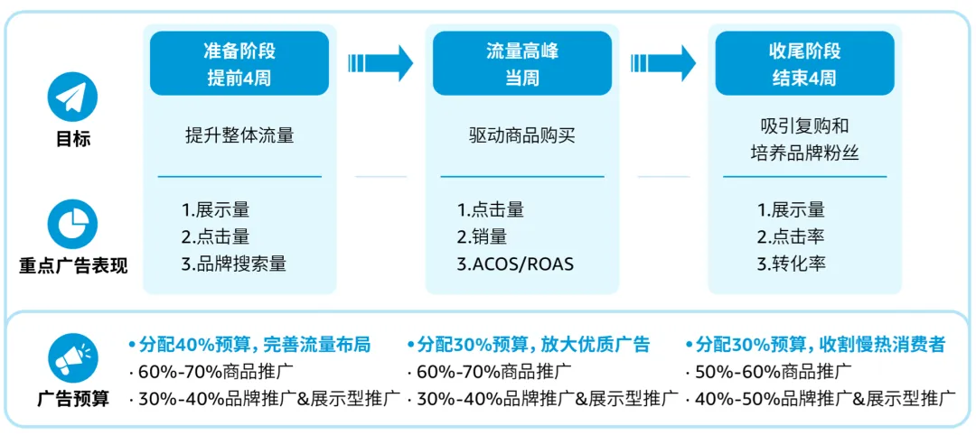 大促广告智慧投,降低ACOS有妙招,码住旺季广告阶段性策略,抢占投放先机!