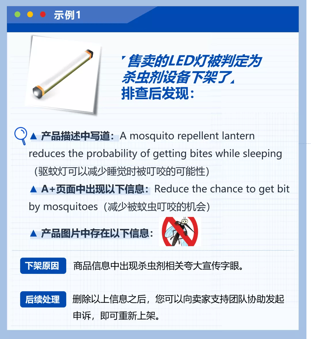 更多卖家可能遇到的是这样的情况:自己销售的也不是杀虫剂,却也因为杀虫剂下架了。