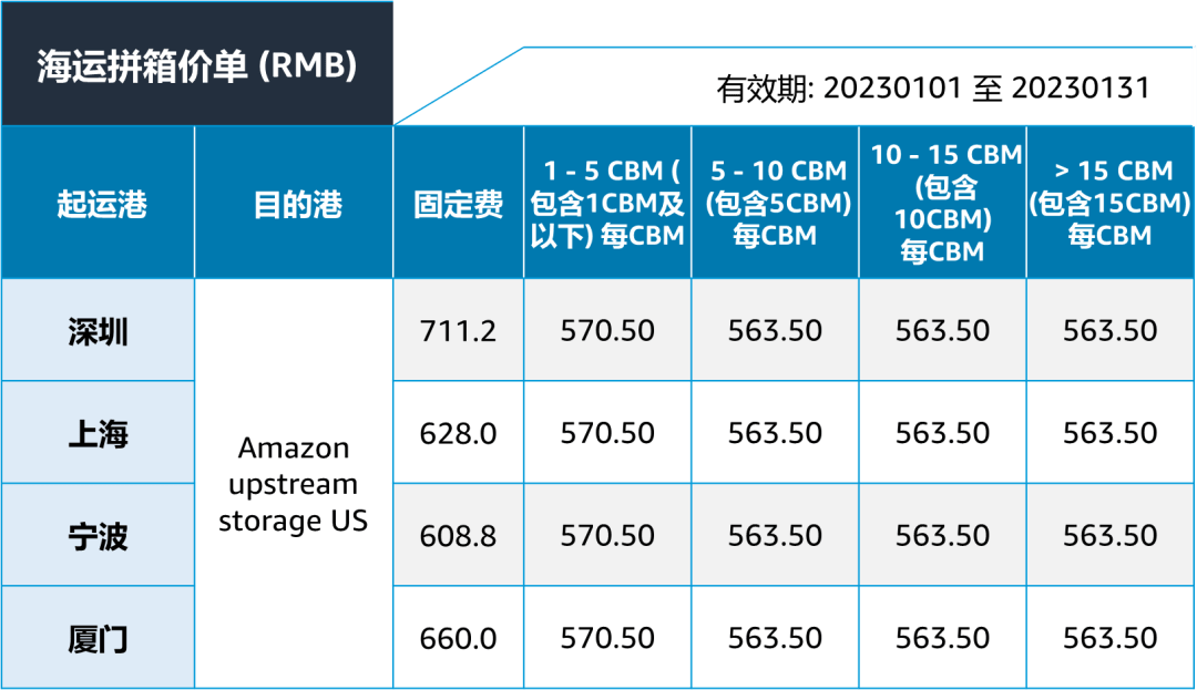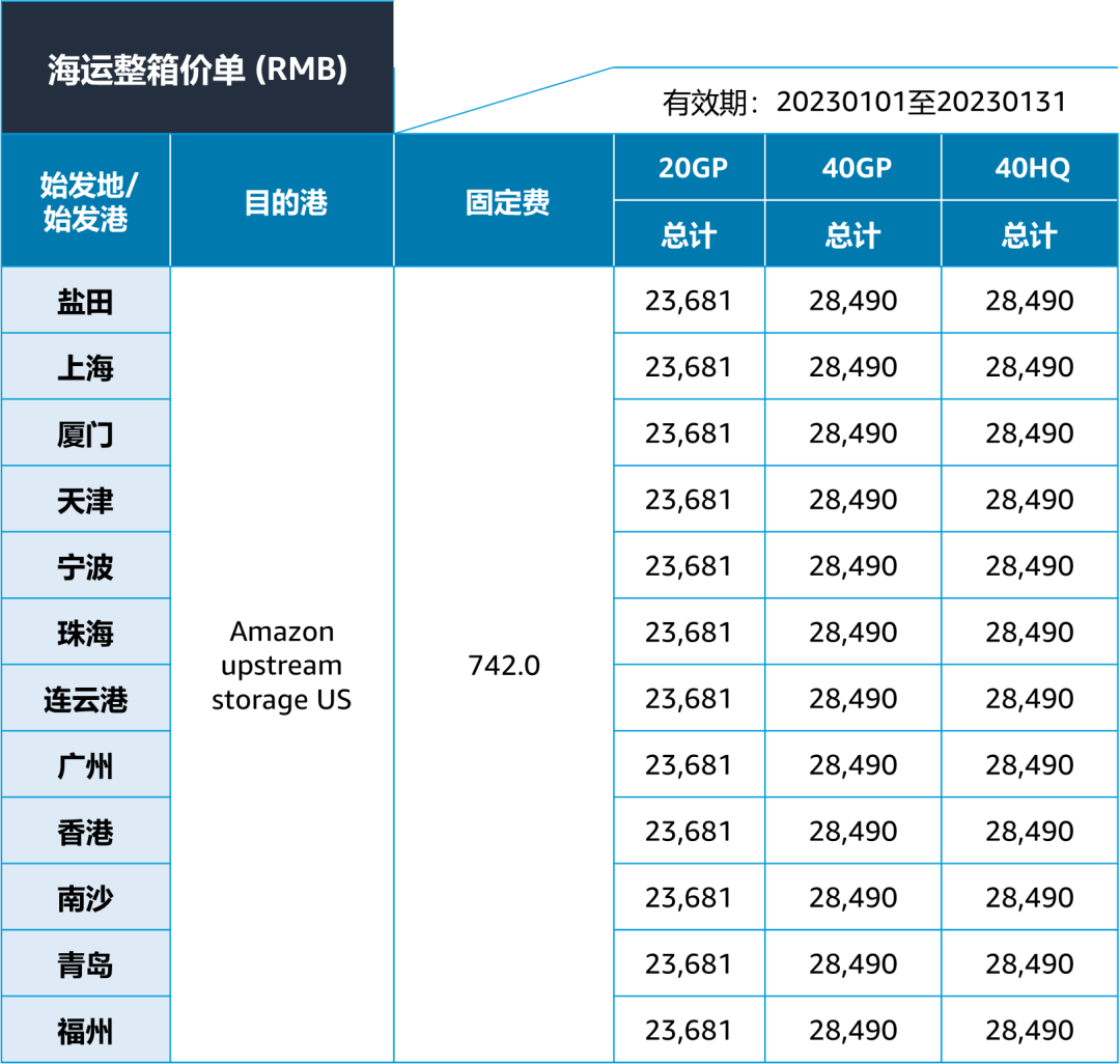 1. 启运港运输到亚马逊卫星仓 (Ship to AWD)的跨境海运费用: