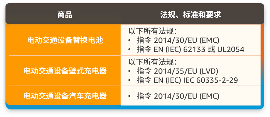 亚马逊要求所有电动交通设备均经过检测并符合下列法规、标准和要求: