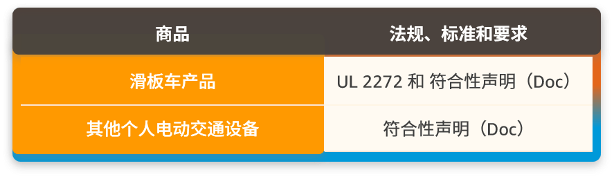 此次合规要求更新适用于以下两种不同的电动交通设备配件: