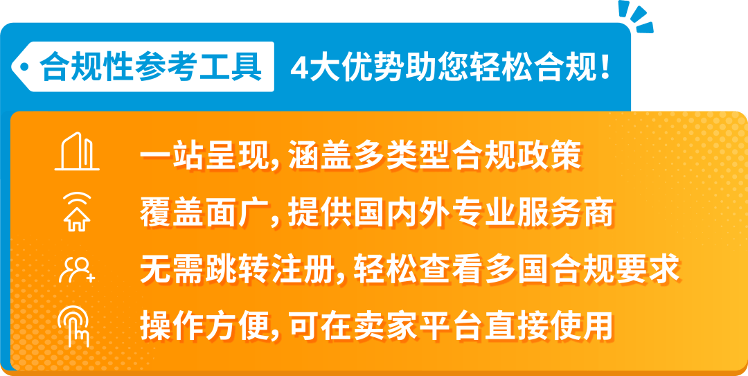 多站点、多品类合规不用愁,亚马逊为各位卖家提供两大实用合规工具,助您有效避坑,顺利应对合规要求!