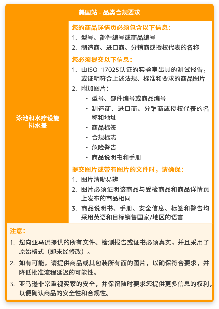复制以下链接至浏览器,登录亚马逊卖家平台,查看亚马逊“泳池和水疗设施排水盖”合规政策👇