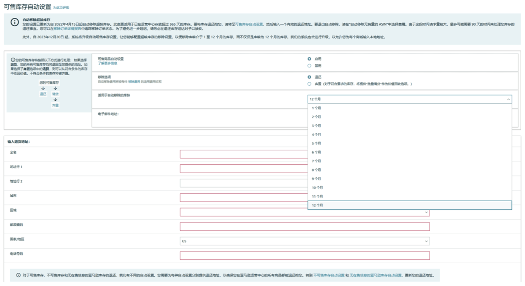 ②如果启用了自动移除,但未设置适用于自动移除的库龄,亚马逊将自动移除库龄超过12个月的库存。