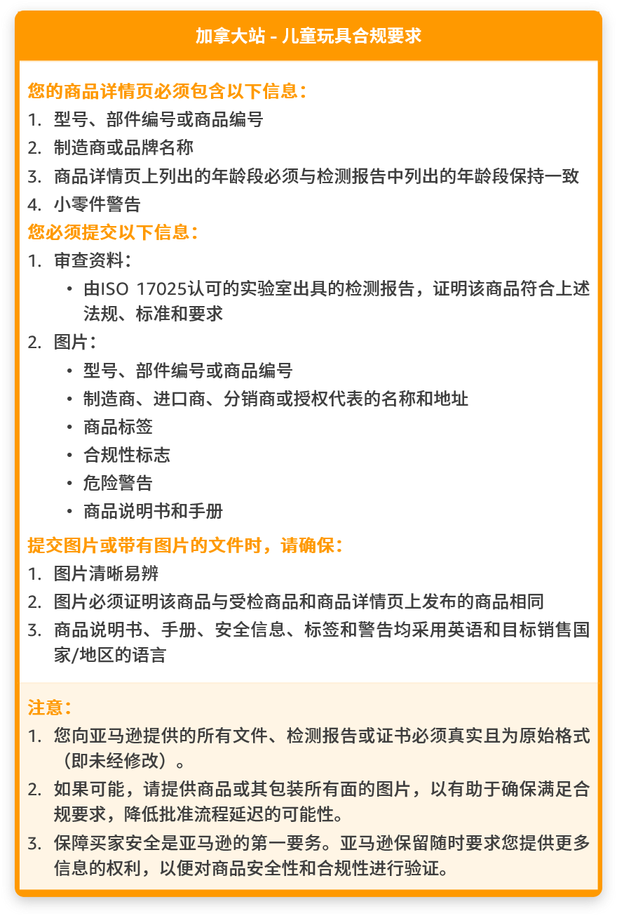亚马逊要求所有儿童玩具均经过检测并符合下列所有法规、标准和要求: