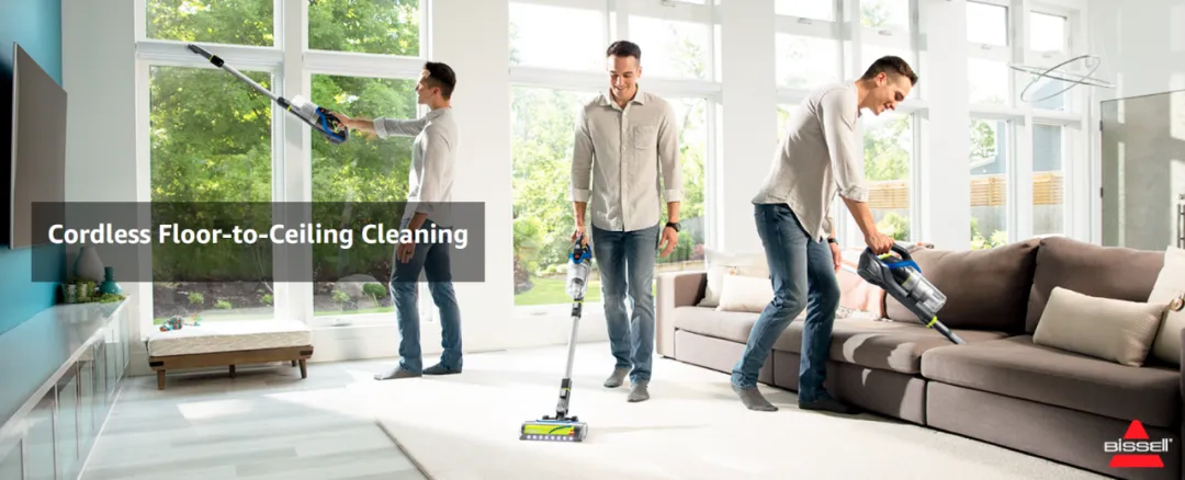 一张照片涵盖多种使用场景。如果您觉得不同场景都制作照片太繁琐,建议您一张图表现所有可用场景,例如,模特一只手手持吸尘器清扫天花板、地板、沙发等不同场景,一张图呈现产品的轻便和多功能性。