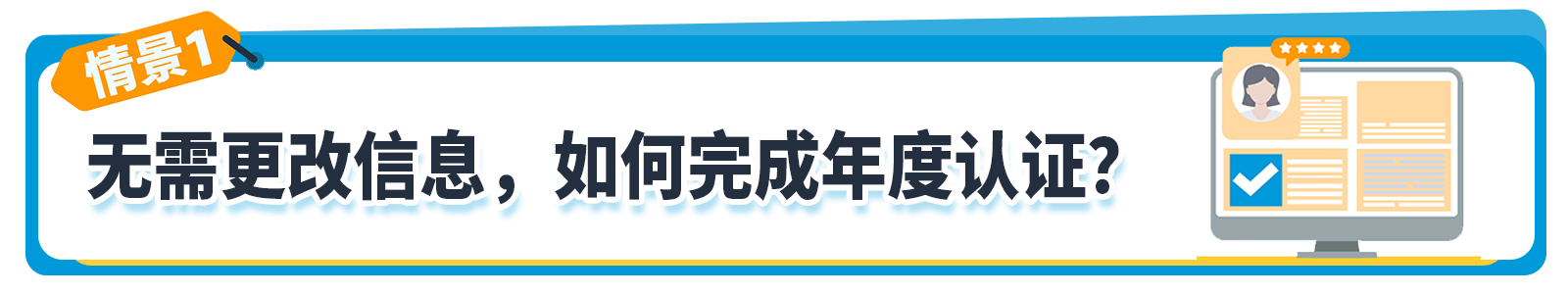 如果您在该操作页面确认所有显示的信息都是准确的,并且是当前所适用的,则无需做任何更改,请点击“继续”按钮进行年度认证。