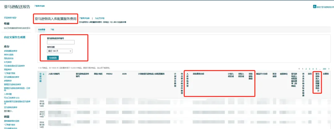 ● 下载报告。此报告将显示入库计划、货件和 SKU 的入库配置服务费用,并帮助您确定入库计划是否符合要求。路径:数据报告 - 库存和销售报告 - 付款 - 亚马逊物流入库配置服务费