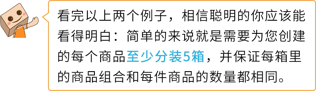 亚马逊对入库网络进行区域化以提高配送时效,根据此设计,把每件商品分散至 5 个或更多相同的纸箱,是卖家能够帮助亚马逊将库存分散到所有地区所需的最低数量。