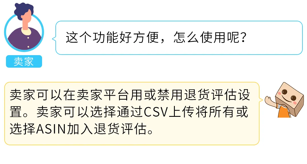 ● 未包含在CSV中的ASIN将会启用退货评估;