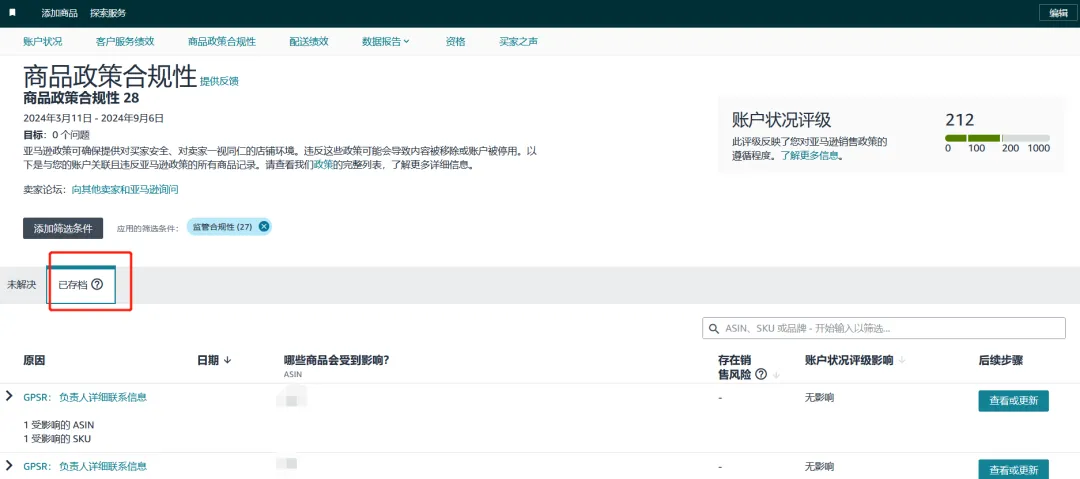 然而最近该窗口上传量大,若您上传的信息迟迟未通过审核,持续出现在“未解决”子页面,请您耐心等待,亚马逊正在加急处理,预计在11月底该问题将得到缓解。如果您的品牌或ASIN已移至监管合规性页面中的“已存档”子页面(如下图),或移至管理您的合规性页面中的“已完成”子页面,则视为合规。