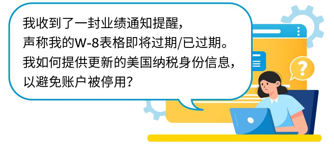 收到提示时,海外卖家需要重新接受税务信息采集以提交新表格。如果您收到亚马逊发来的提醒,声称您的W-8表格即将过期或已过期,那么要继续进行销售,您必须重新进行纳税身份信息采集。如果您是非美国税务居民,且您不能提供最新的W-8表格,亚马逊将暂停您的销售权限。