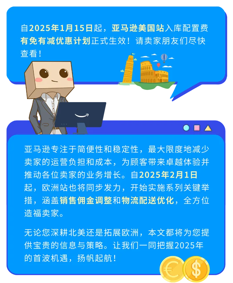 2025年,尽管通货膨胀仍对开支产生较大影响,但亚马逊会通过创新、提效等方式,持续优化服务成本。为此,自2月1日开始,亚马逊欧洲站将采取一系列关键举措: