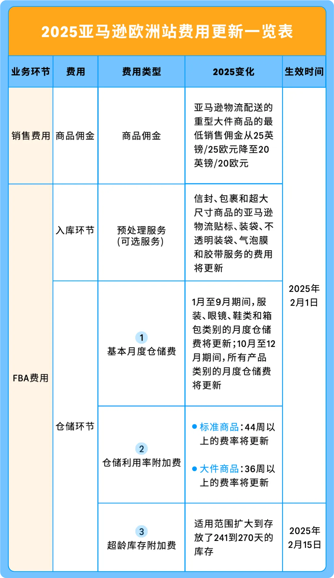 🔹从2025年1月15日起,亚马逊物流配送费恢复到非旺季费率,费率与2024年保持不变。