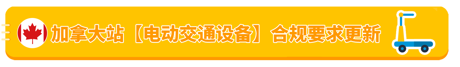 如果您在加拿大站销售电动交通设备配件商品,请您及时关注个人邮箱以便接收到提醒邮件。若您错过提交合规文件的日期,产品将面临下架风险。