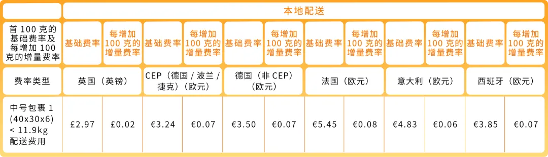 本次配送费用更新适用于英国、德国、法国、意大利和西班牙店铺的本地和亚马逊物流欧洲整合服务、欧洲配送网络、英国和欧盟之间的远程配送,以及商品原包装发货计划。