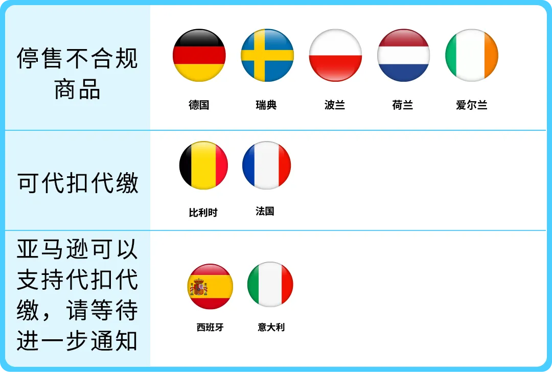 这是因为加入泛欧计划的要求之一是您的产品需要在德国、法国、意大利、西班牙和荷兰同步销售。如果未满足这些国家的合规要求,相关产品将无法继续参与泛欧计划。因此亚马逊建议您尽快完成德国和荷兰的电池EPR注册,以确保合规销售并继续享受泛欧计划的权益。
