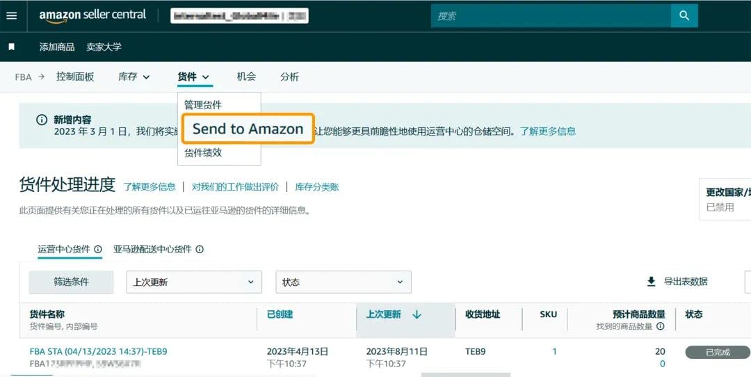 进入“SEND to Amazon”, 创建亚马逊FBA货件。