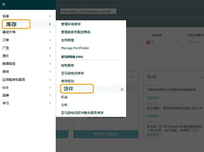 第1步:点击“库存”中“货件”选项。