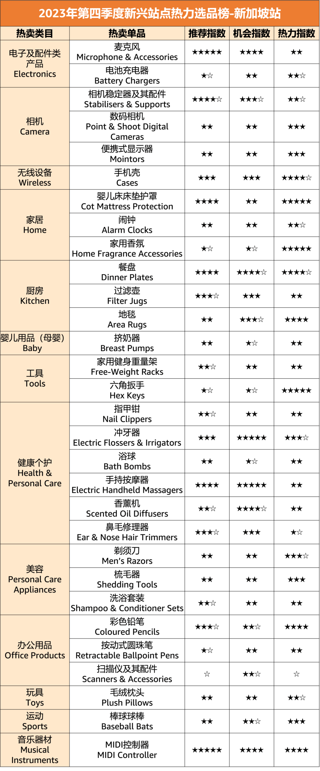 亚马逊新加坡站热卖选品