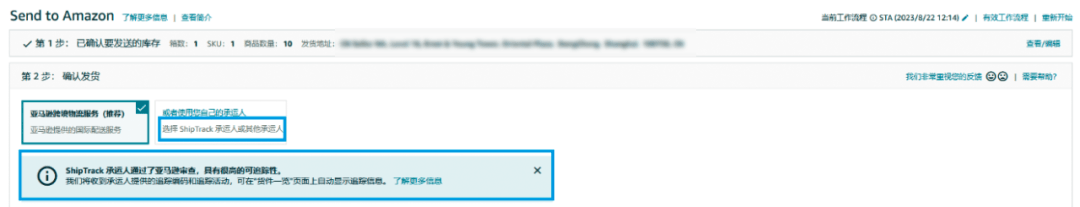 ShipTrack的设置也并不复杂,体验上的唯一变化是在卖家平台通过发送至亚马逊(Send to Amazon)创建货件时: