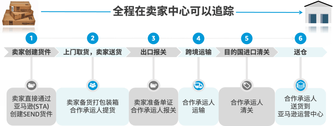 亚马逊跨境承运伙伴方案(Amazon SEND),由亚马逊筛选的物流合作承运人,将卖家入仓的货件从中国发往目的国的亚马逊运营中心, 为卖家提供一站式FBA头程入仓服务。通过卖家平台即可简单入门,轻松体验FBA优质服务。