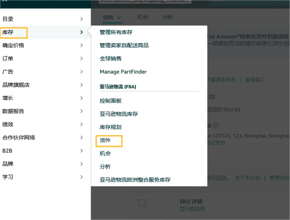 第二步 点击【库存】- 【货件】