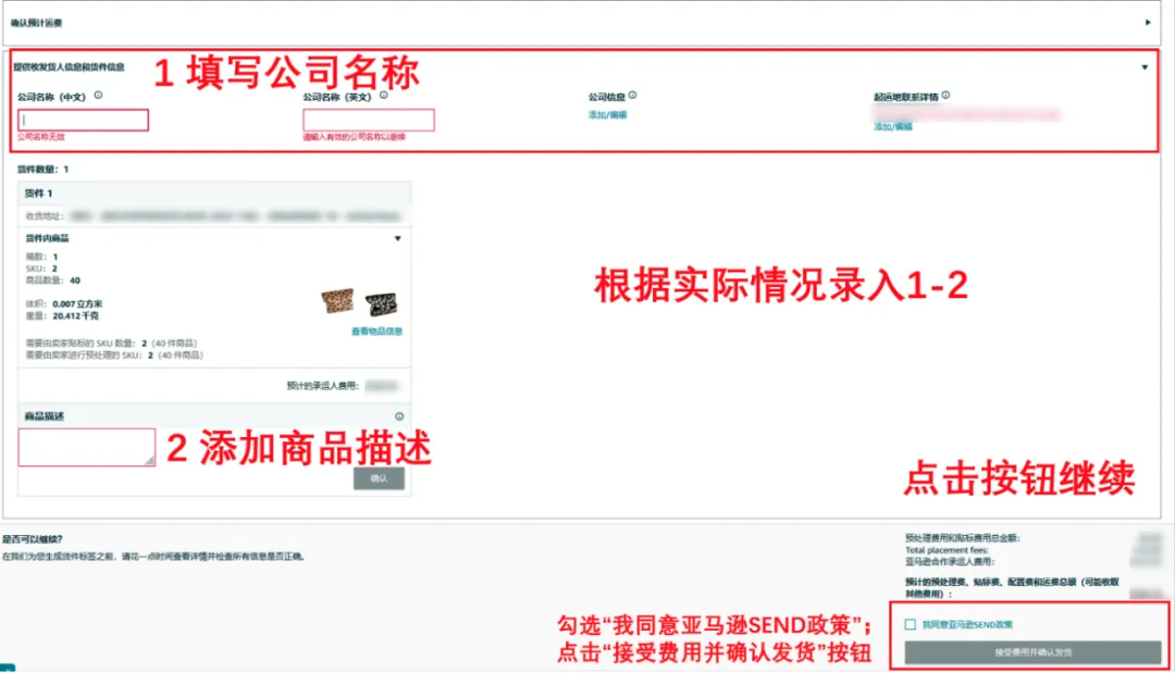● 填写发货人信息和货件信息