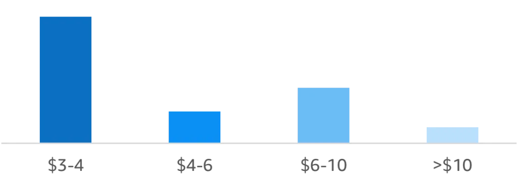 热卖产品的平均单价为7.35美元,市场上集中定价在3.XX美元和6.XX美元两个价格点。卖家A计划布置两条产品线,根据产品特征和参数,继续对价格区间进行细分。