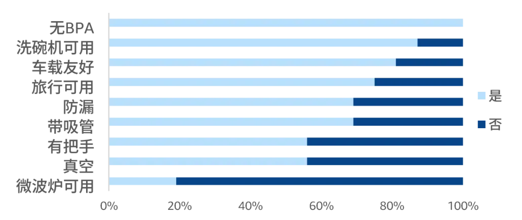 热卖产品多为500-750ml的大容量,不含BPA、洗碗机可用、车载友好是热卖商品的三大共同特征,其次旅行可用、防漏和带吸管也是需要重点关注的。进一步研读热卖商品的负面消费者评论,发现消费者还希望产品能够易清洁。卖家B目前的选品为洗碗机不可用,因此决定重点寻找符合市场需求的产品。