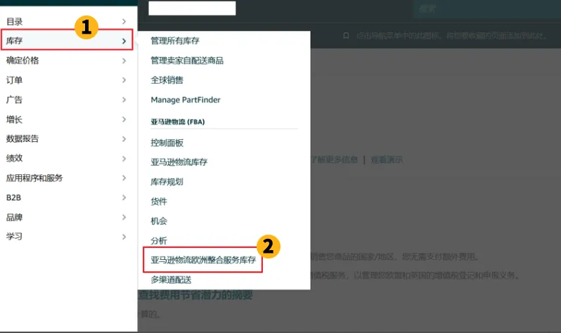 查看哪些国家未享受Pan-EU福利的路径:卖家后台 – 菜单 – 库存 – 亚马逊物流欧洲整合服务库存 – 商城注册