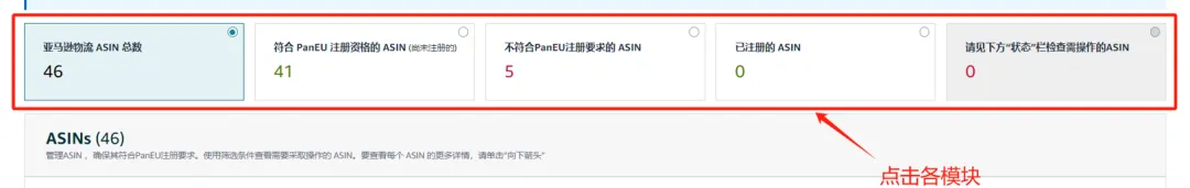 如下图依次点击“符合注册亚马逊物流欧洲整合服务的条件”/“注册即将结束”/“注册已结束” (如显示大于0)。