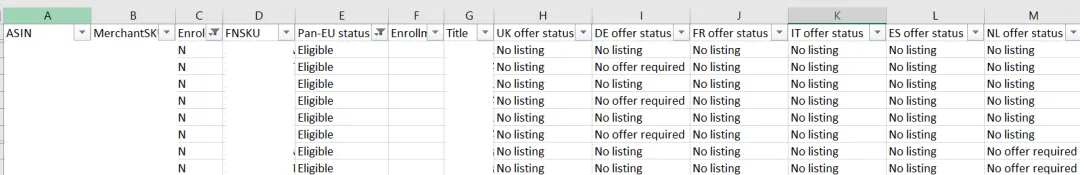 新政策上线后,之前已经加入了Pan-EU项目的卖家,有可能会有部分符合条件的ASIN未享受到Pan-EU的福利。那么可以通过以下方法,来定位已享受Pan-EU福利的ASIN。
