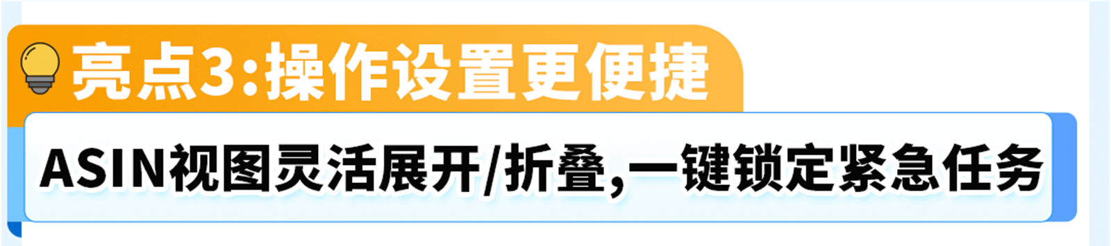 当ASIN数量较多时,卖家可以通过灵活扩展/折叠ASIN视图,一键获取清晰、统一的概览页面和ASIN信息。同时,还能通过查看本次新增的根据紧急程度来展示任务优先级的操作标签,根据标签不同颜色,便于卖家一眼锁定并处理紧急且重要的任务。