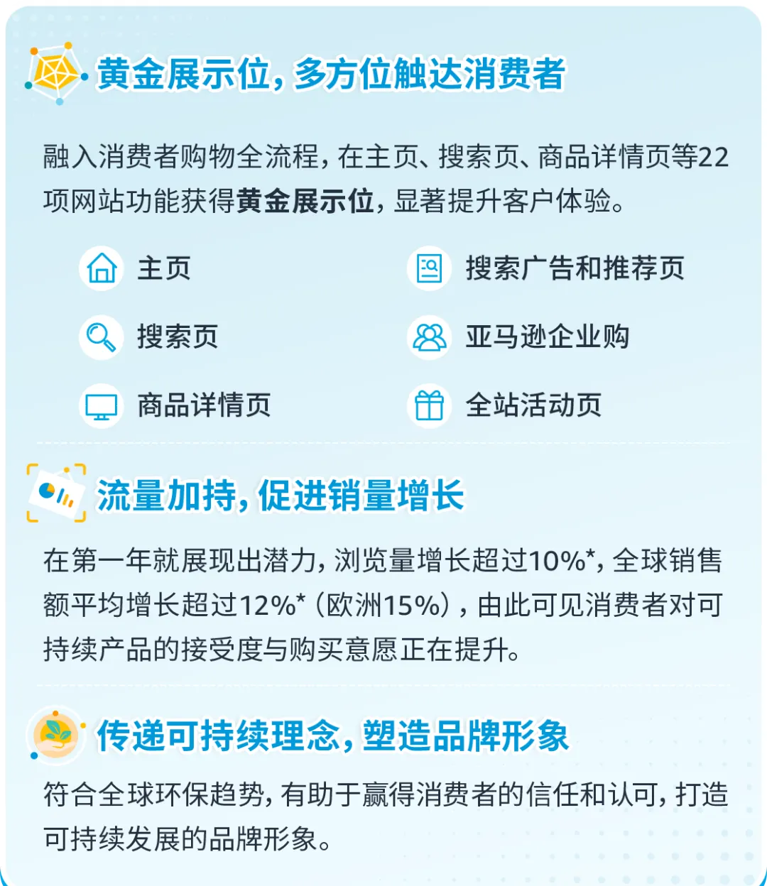 注意:销售额增长基于来自美国站和欧盟五国站点的数据,并不能保证未来的业绩,可能会因产品的销售速度、类别、品牌和质量而异。