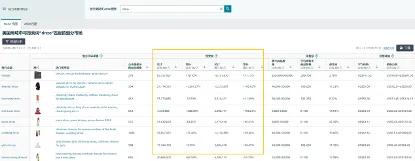 以关键词“dress”为例,系统展示了多个细分市场的搜索趋势。可以看到,“christmas dress”“homecoming dress”等在近90天内搜索量激增,明显呈现出节日品类的短期爆发。